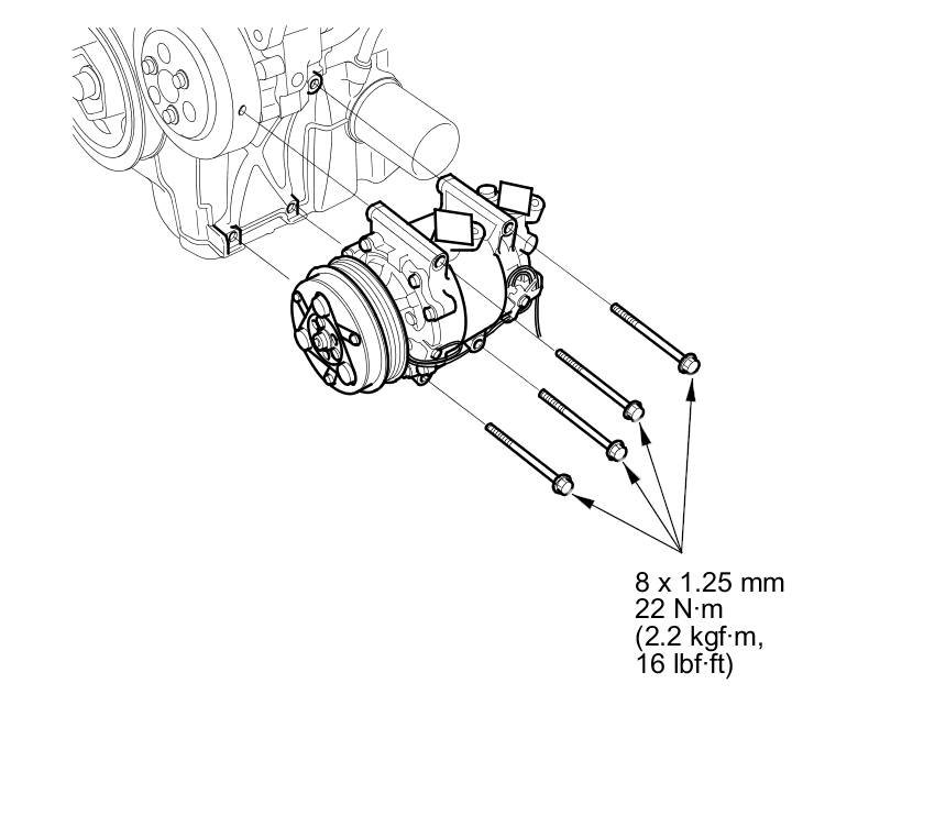 8. Install the compressor in the reverse order of removal, and note these items: