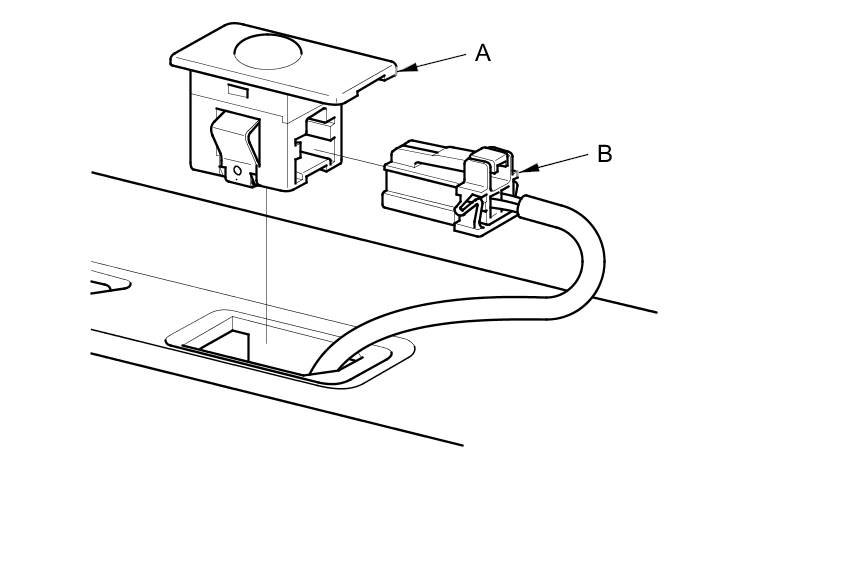 1. Remove the sunlight sensor (A) from the dashboard, then disconnect the connector (B). Be careful not to damage the sensor and the dashboard.