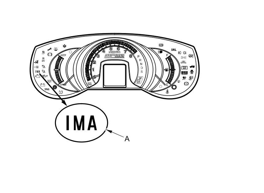 1. Start the engine, and check the IMA system indicator (A).