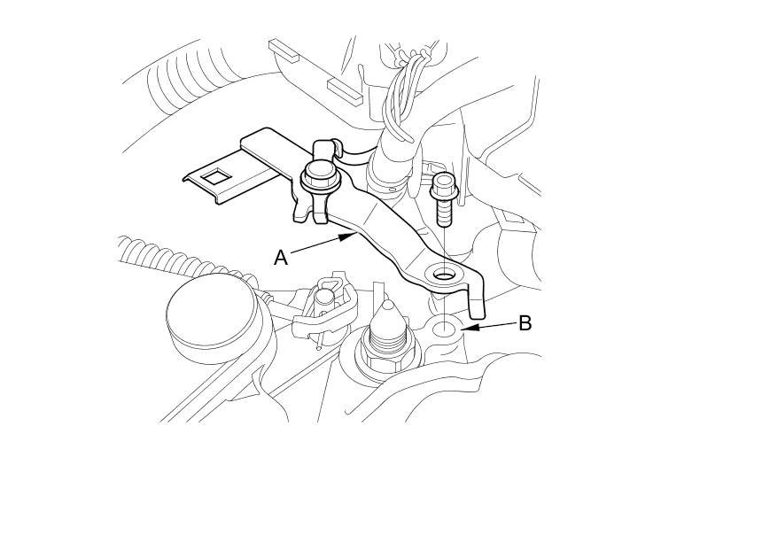 5. Remove the ground terminal bracket (A) from the transmission mount (B).