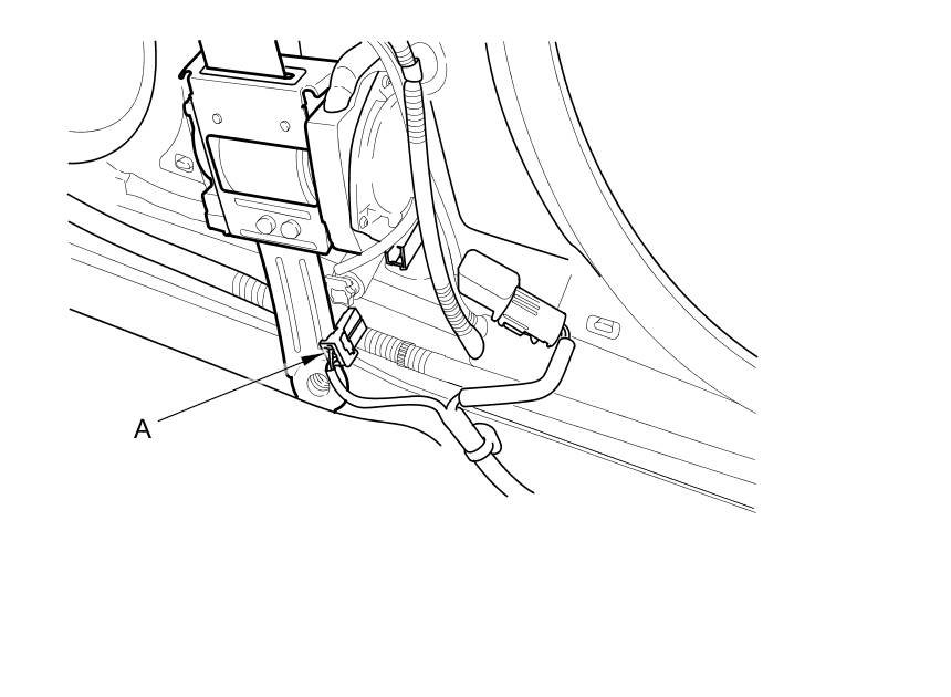11. Disconnect both floor wire harness 4P connectors (A) from the driver's and front passenger's seat belt tensioners. Pull the seat belt out all the way and cut it.