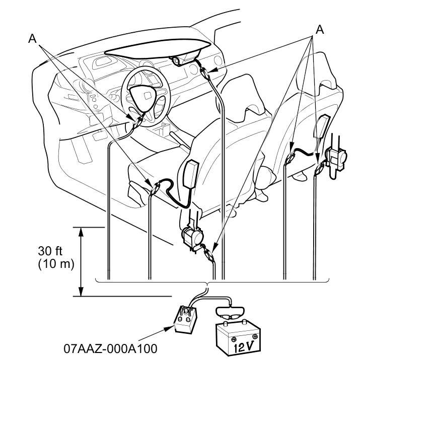 - Place the deployment tool at least 30 ft (10 m) away from the vehicle.