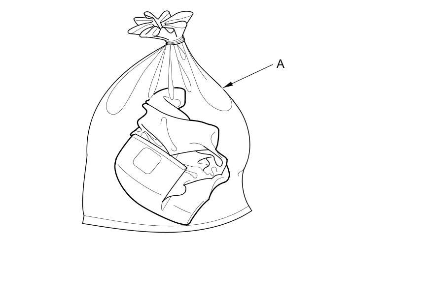 15. Dispose of the complete airbag. No part of it can be reused. Place it in a sturdy plastic bag (A), and seal it securely. Dispose of the deployed airbag according to your local regulations.