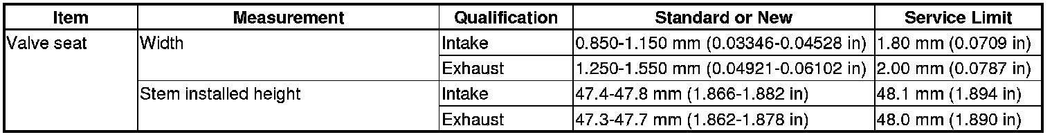Valve Seat Specification(s)