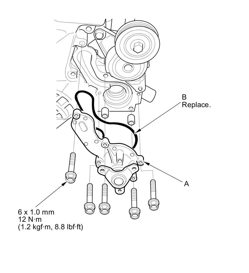 Five bolts securing the water pump (A)