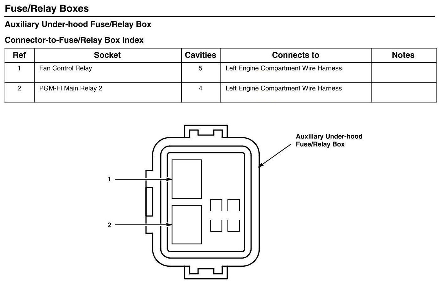 Auxiliary Under-hood Fuse/Relay Box - Connector-to-Fuse/Relay Box Index
