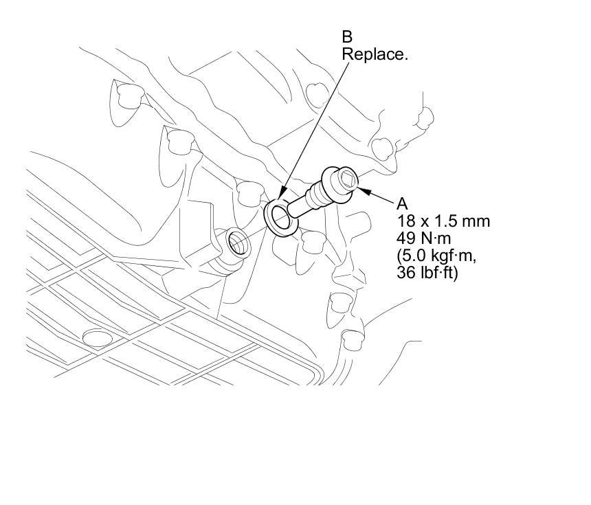 17. Reinstall the drain plug and a new sealing washer (B).
