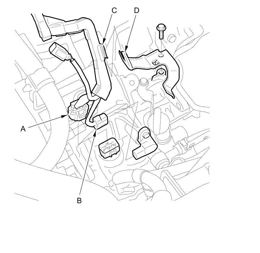24. Remove the harness holder (C) from the clamp bracket (D), then remove the clamp bracket.