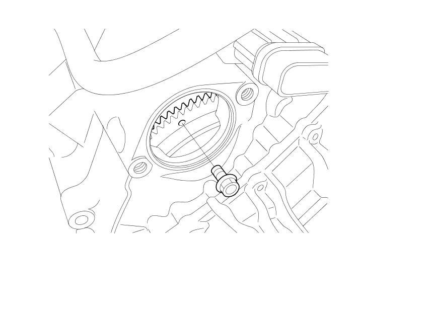 32. Remove the drive plate bolts (six) at the opening of the starter while rotating the engine crankshaft pulley.