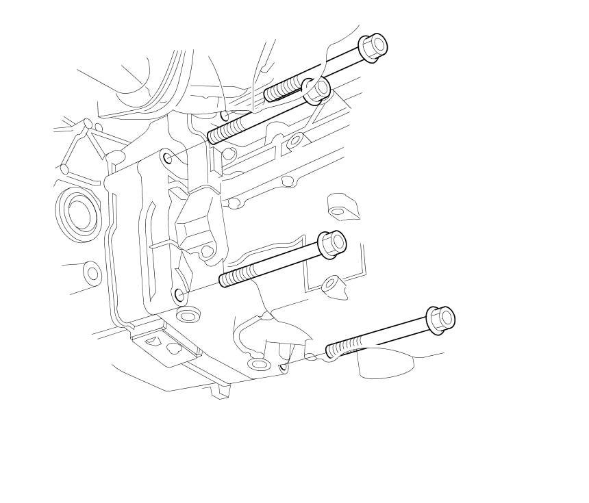 50. Remove the upper and front transmission housing mounting bolts.