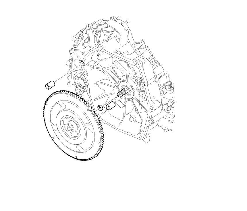 56. Remove the flywheel assembly with the rubber sealing ring and the dowel pins.