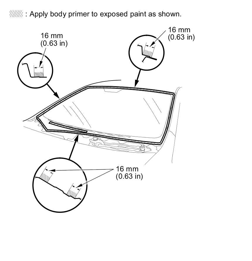 - Never touch the primed surfaces with your hands. If you do, the adhesive may not bond to the windshield properly, causing a leak after the windshield is installed.