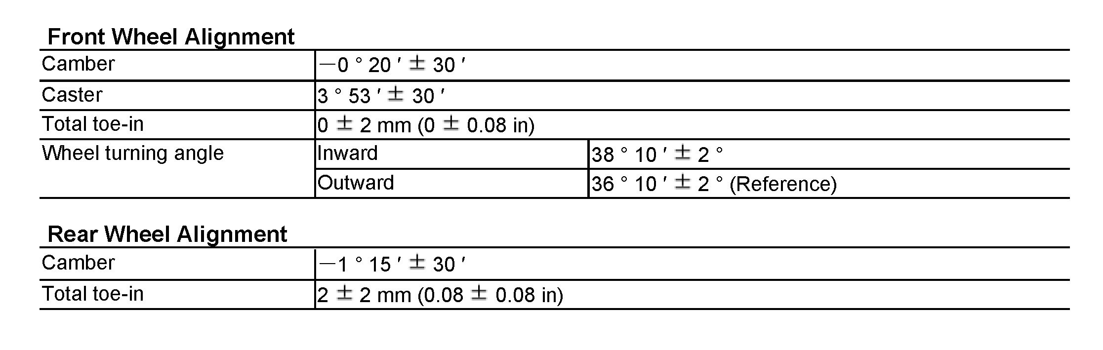 Body Specifications / Wheel Alignment