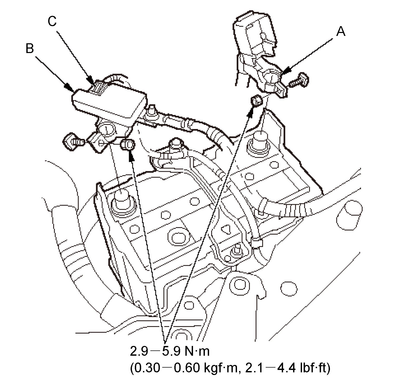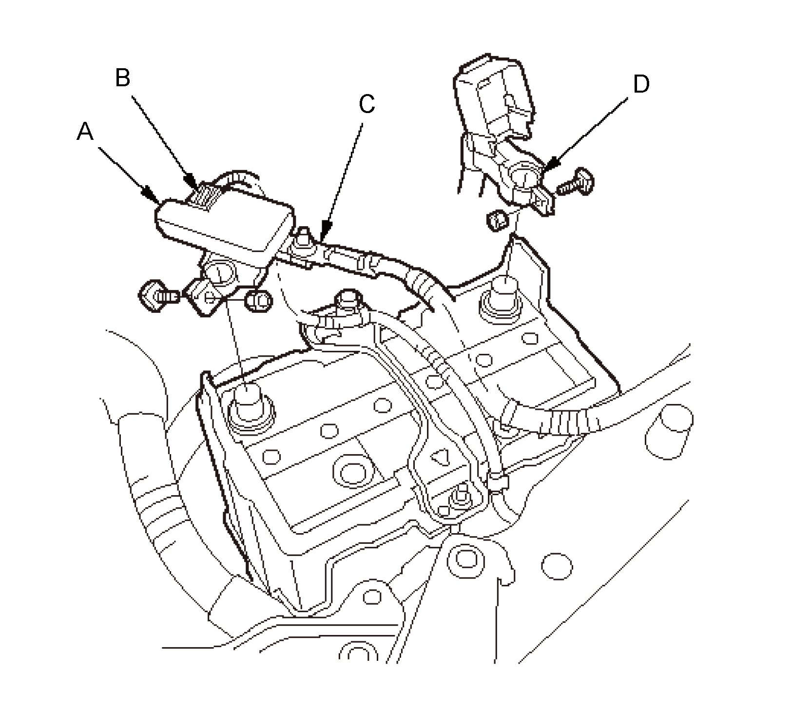 NOTE: To protect the battery sensor connector (C) from damage do not hold it when installing the negative terminal.