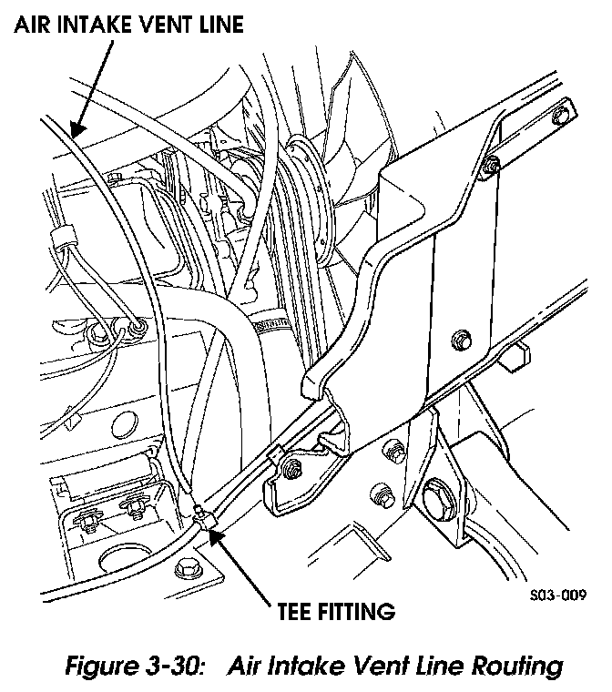 Install air intake vent line on tee fitting and air cleaner fitting (Figures 3-27 and 3-29)