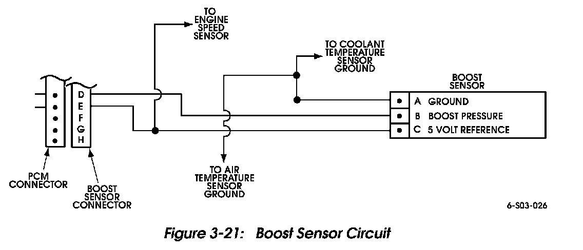 The PCM supplies the boost sensor with a 5 volt reference signal (Figure 3-21).