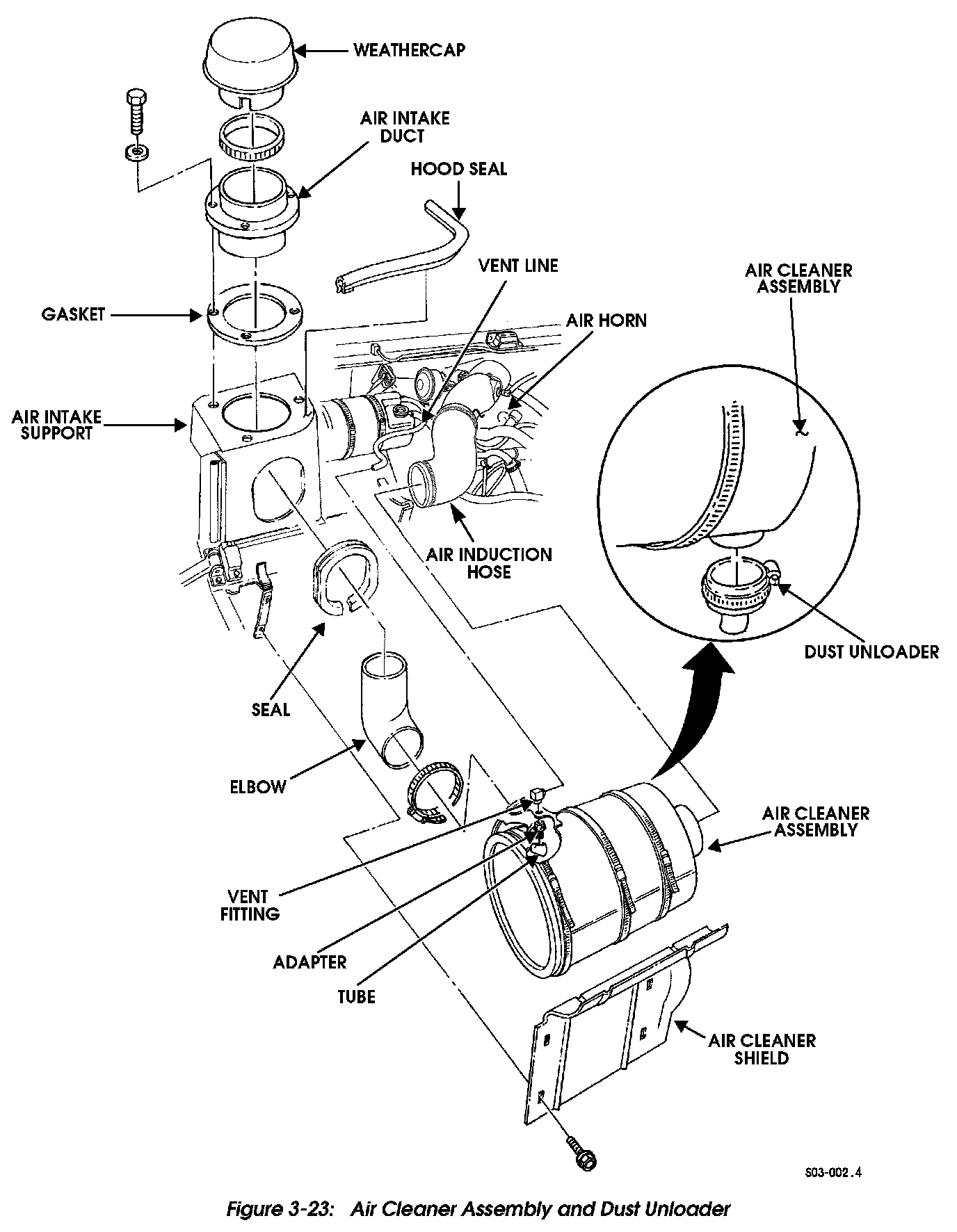 Figure 3-23: Air Cleaner Assembly and Dust Unloader:
