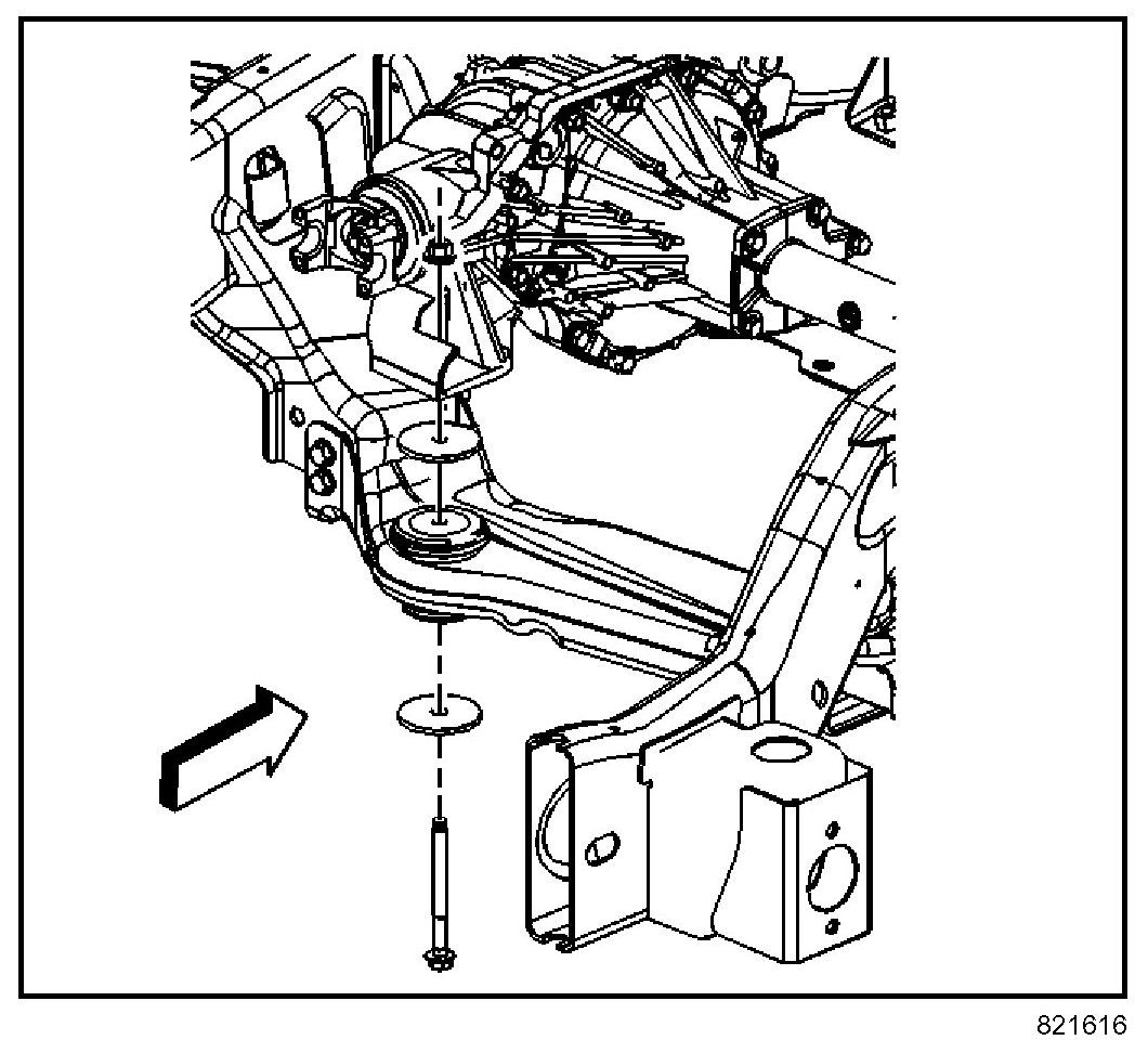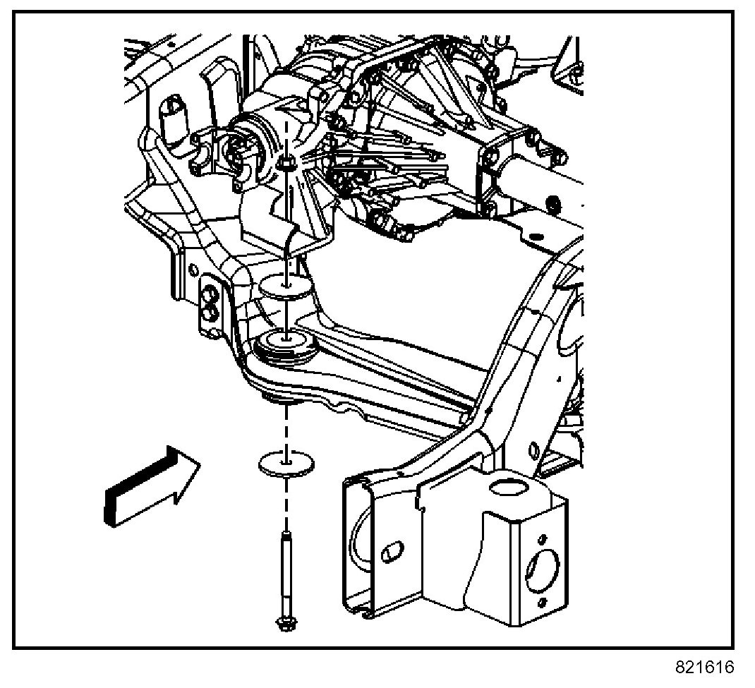 5. Install the differential mounting nut, bolt, and washer.