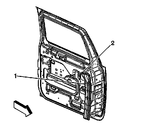 1. Attach the weatherstrip (1) to the door by installing the 7 retainers (2) that secure it to the door.