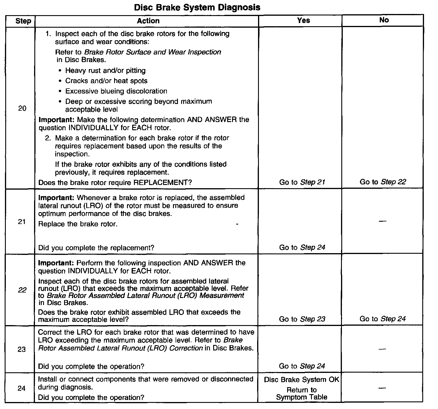 22. Disc brake rotor assembled lateral runout (LRO) that exceeds the maximum acceptable level can lead to thickness variation.