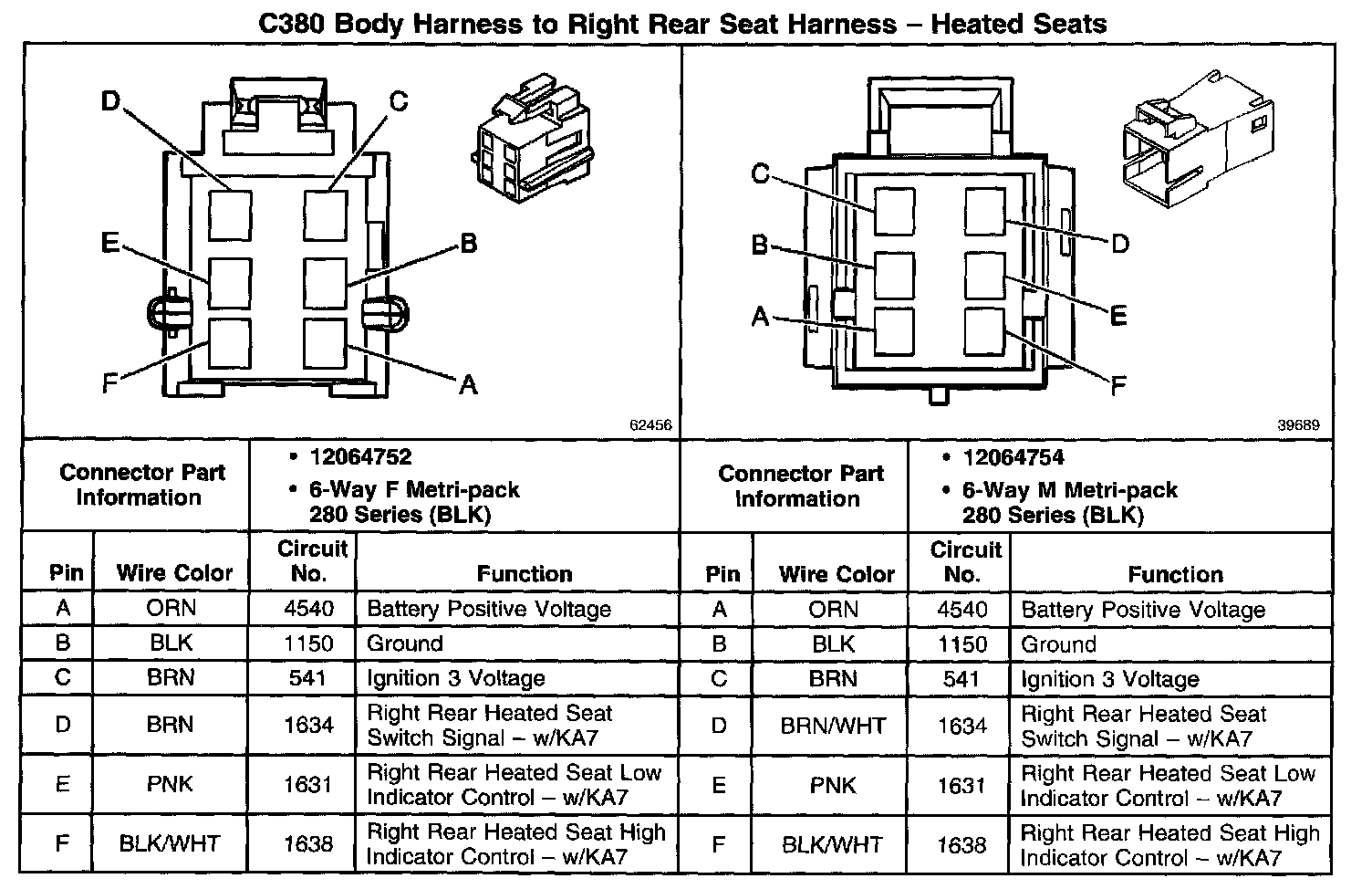 C380 Body Harness To Right Rear Seat Harness - Heated Seats: