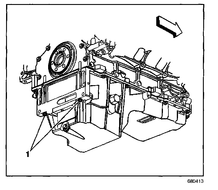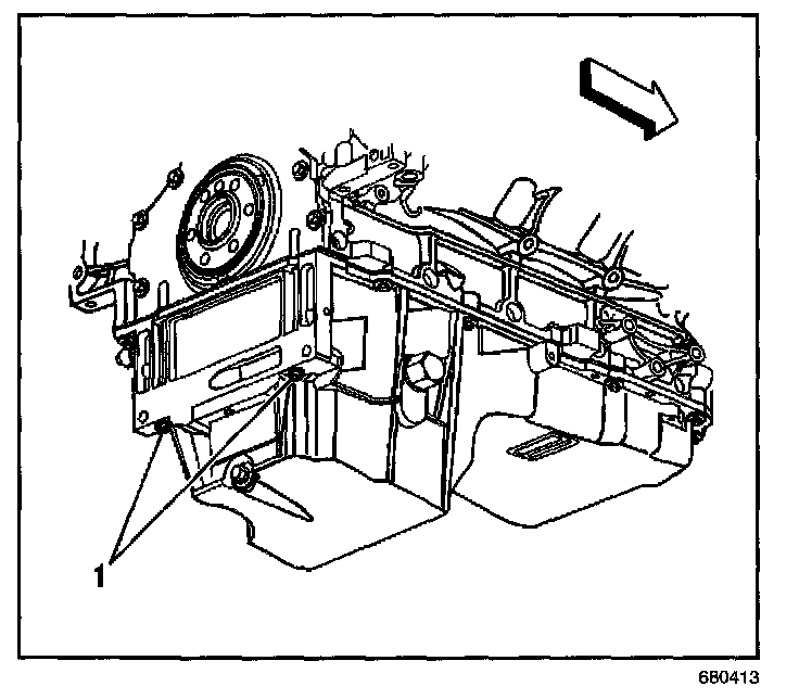 4. Install the oil pan-to-rear cover bolts (1) until snug. Do not overtighten.