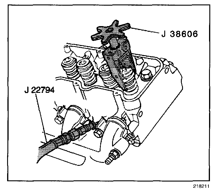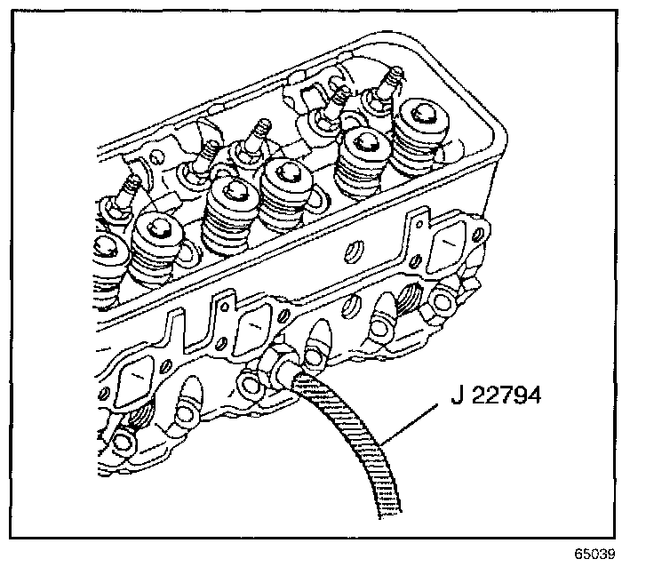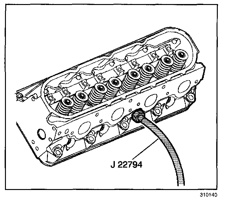 8. Apply compressed air to J 22794 in order to hold the valves in place.