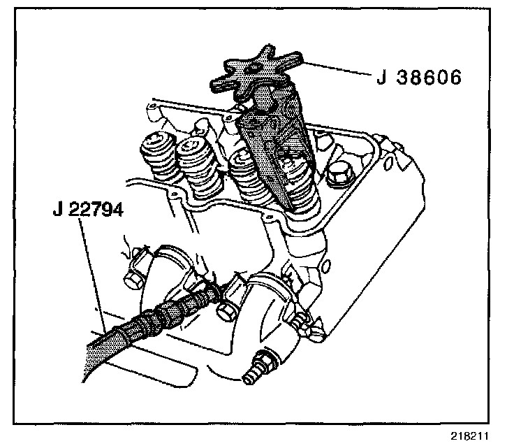 9. Use J 38606 in order to compress the valve spring.