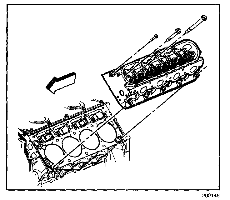 NOTE: Clean all dirt, debris, and coolant from the engine block cylinder head bolt holes. Failure to remove all foreign material may result in damaged threads, improperly tightened fasteners or damage to components.
