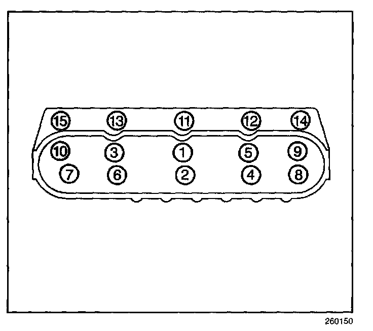 8.1. Tighten the Mu cylinder head bolts a first pass in sequence to 30 N.m (22 lb ft).