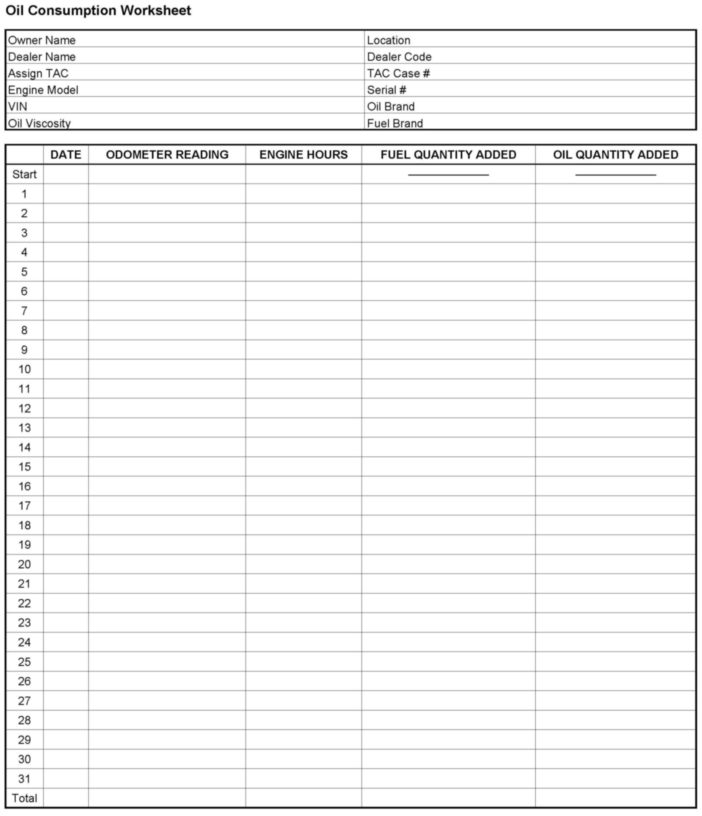 2. Begin oil consumption test after next regularly scheduled oil and filter change. Oil changes should not be performed during the test.