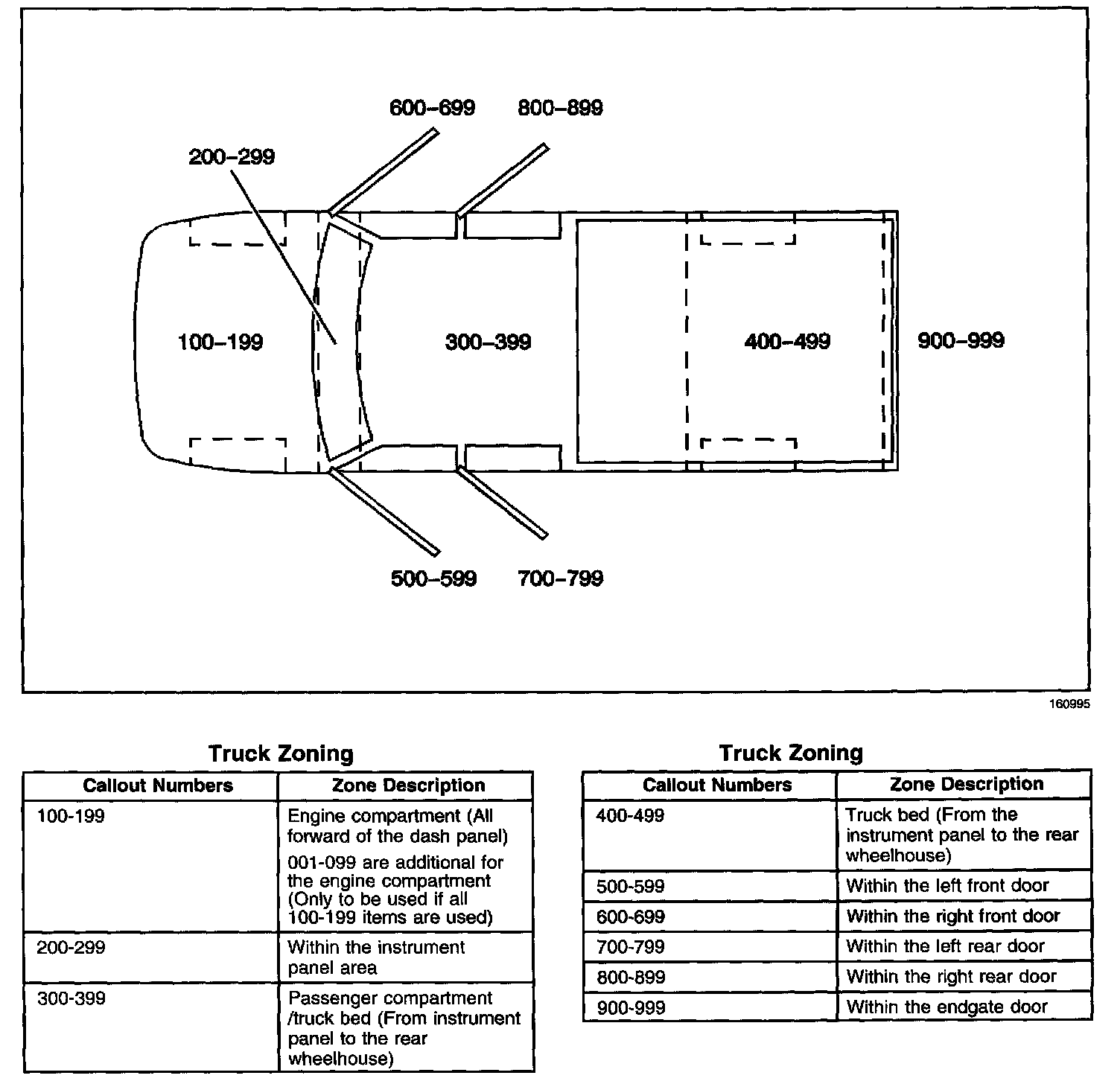 All grounds, in-line connectors, pass-through grommets, and splices have identifying numbers that corresponds to where they are located in the vehicle. The following table explains the numbering system.