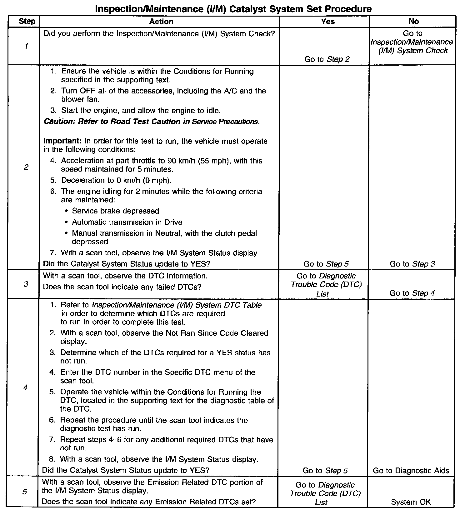1. Perform the I/M System Check before performing this test. Failure to do so may result in difficulty updating the status to YES. Inspection/Maintenance (I/M) System Check