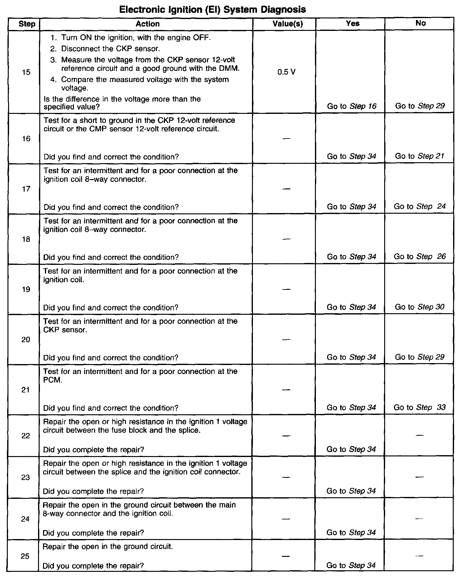 ELECTRONIC IGNITION (EI) SYSTEM DIAGNOSISCIRCUIT DESCRIPTION