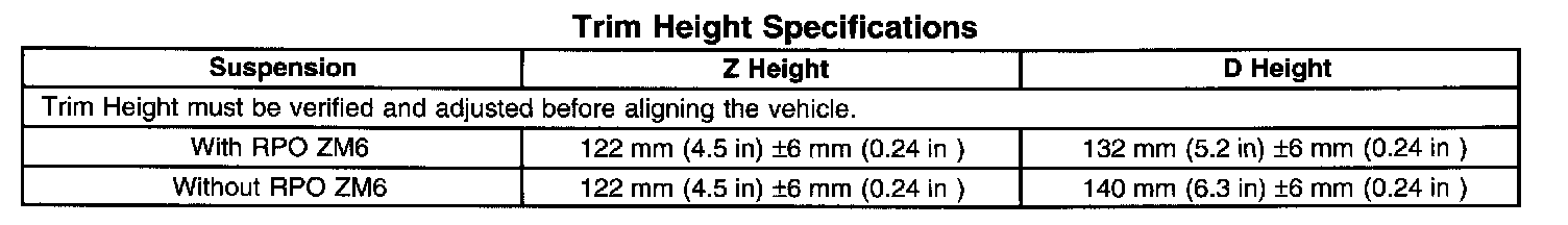 Trim Height Specification