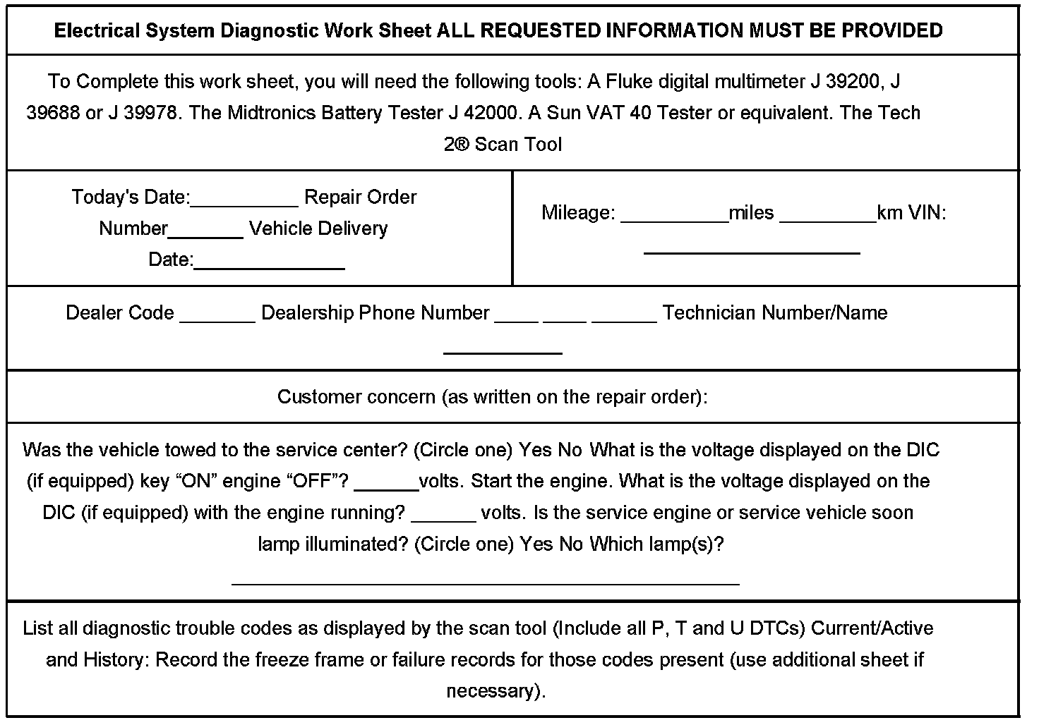Accurate feedback from technicians will allow General Motors to accurately inspect and diagnose batteries and/or generators replaced in the field.