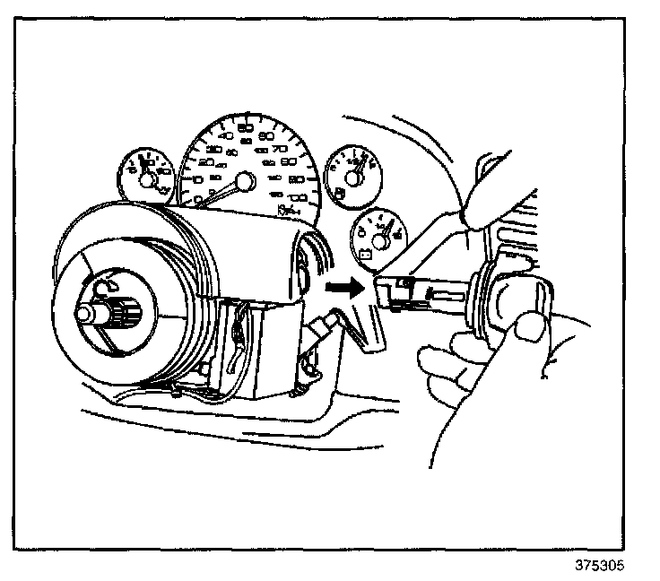 8. Remove the ignition lock cylinder by pulling the cylinder away from the steering column.