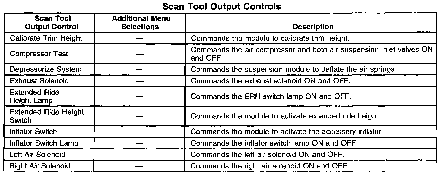 Scan Tool Output Controls: