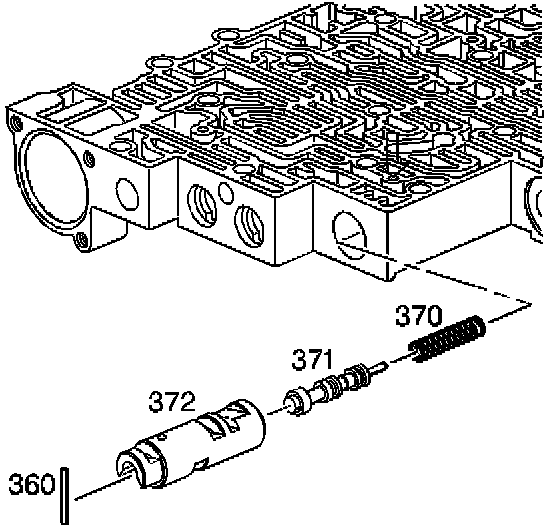 ^ Chips/Sediment/Debris/Contamination found in the valve body, 1-2 accumulator valve (371) bore, may cause the 1-2 accumulator valve to stick or hang-up.