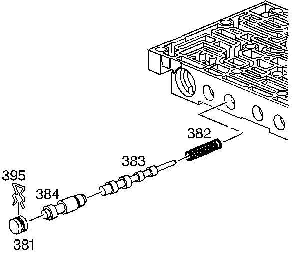 ^ Chips/Sediment/Debris/Contamination found in the valve body, 4-3 sequence valve (383) bore, may cause the 4-3 sequence valve to stick or hang-up.