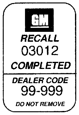 Place a Recall Identification Label on each vehicle corrected in accordance with the instructions outlined in this Product Recall Bulletin. Each label provides a space to include the recall number and the five (5) digit dealer code of the dealer performing the recall service This information may be inserted with a typewriter or a ball point pen.