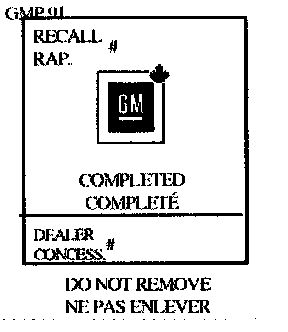 This information may be inserted with a typewriter or a ball point pen. Put the Recall Identification Label on a clean and dry surface of the radiator core support in an area that will be visible to people servicing the vehicle. Additional Recall Identification Labels for Canadian dealers can be obtained from DGN.