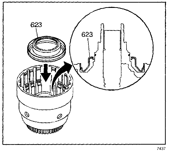 3. Install the 3rd and 4th clutch piston (623) into the input housing.