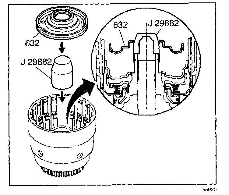 14. Install the overrun clutch piston (632) into the input housing.