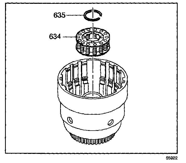 7. Install the 3rd and 4th spring assembly (626) into the 3rd and 4th clutch apply ring (625).