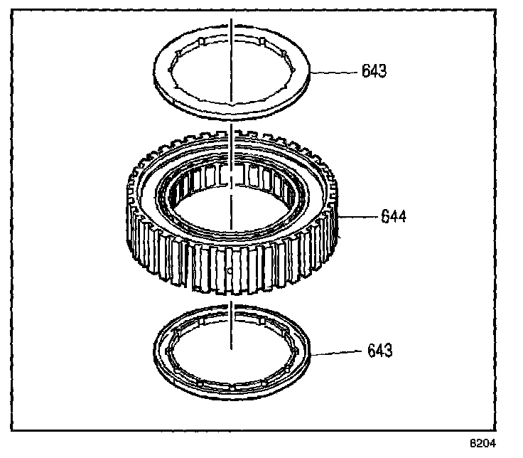 4. Remove the sprag assembly retainer rings (643).