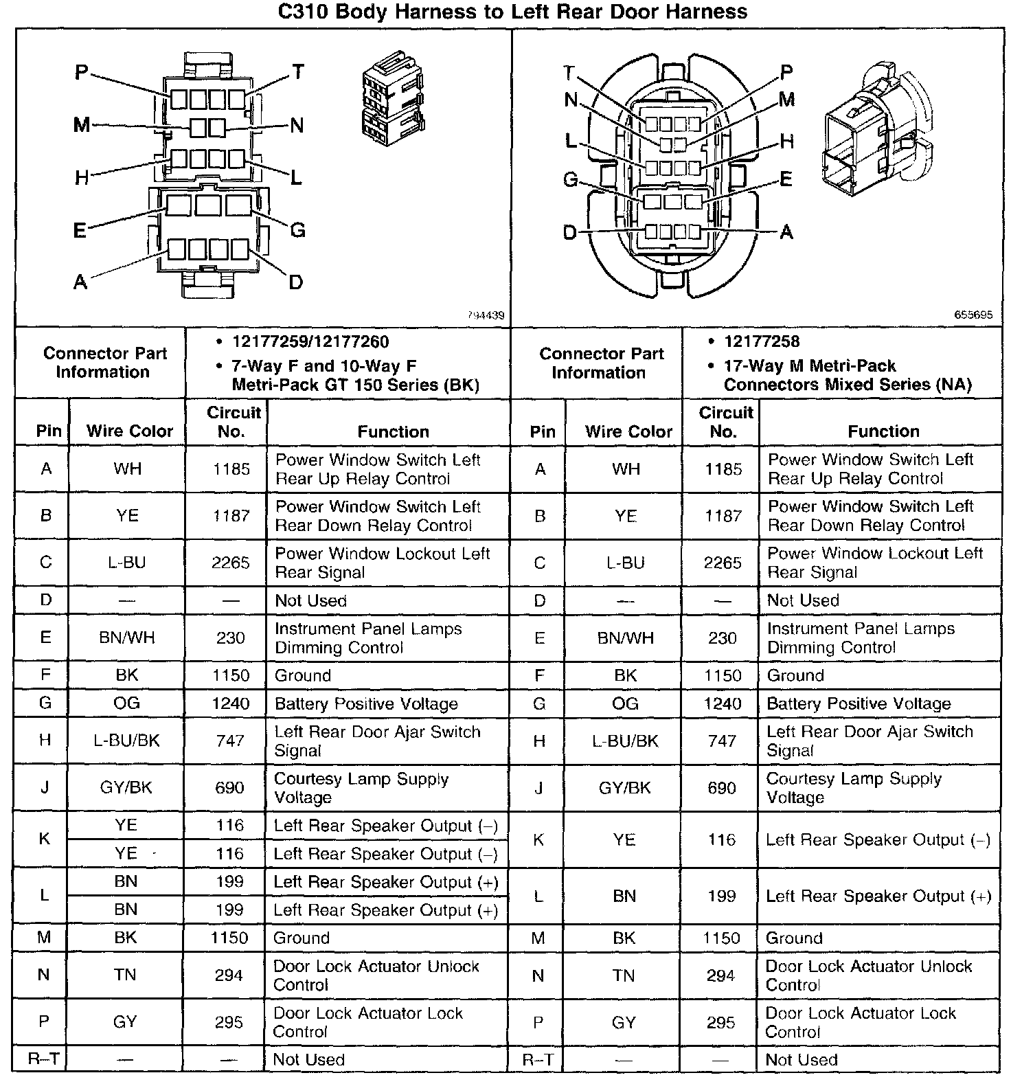 C310 Body Harness To Left Rear Door Harness: