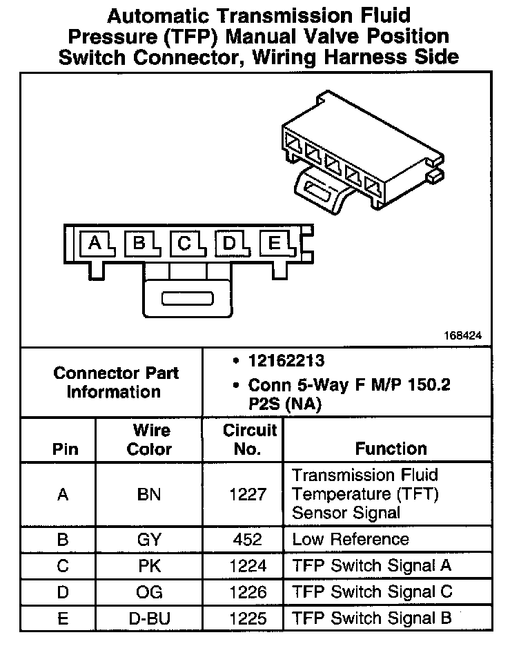 Automatic Transmission Fluid Pressure (TFP) Manual Valve Position Switch Connector, Wiring Harness Side:
