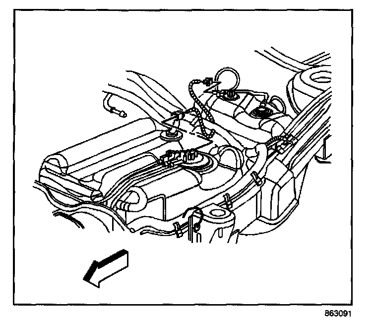 11. With the aid of an assistant, support the fuel tank.