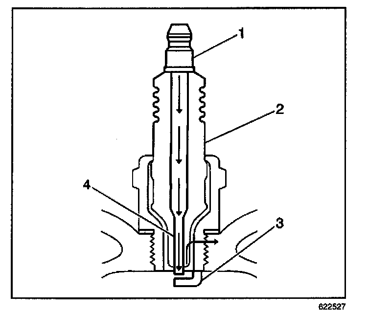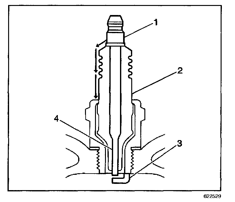 - Inspect for a broken, worn, or loose center electrode (4) by shaking the spark plug.